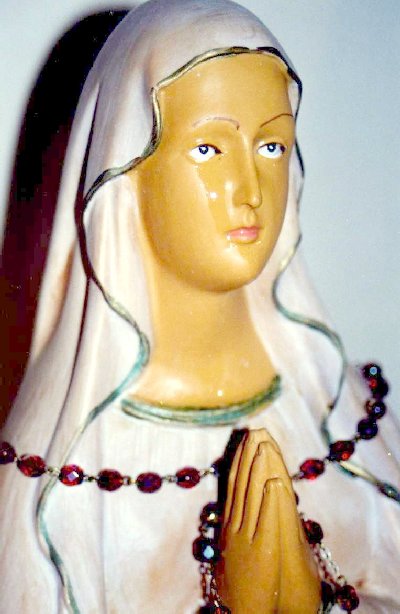Suzy Vardanian aus Australien schreibt uns folgendes: Unsere Heilige Mutter, die Statue der Unbefleckten Empfängnis, weint seit dem 14. September. Gleichzeitig entströmt der Statue ein Himmlischer Duft. Bitte betet in ganz inniger Weise. Wir haben den Rosenkranz gebetet, das Weihegebet an die Zwei Herzen und das tägliche Gebet um Frieden in der Welt. |