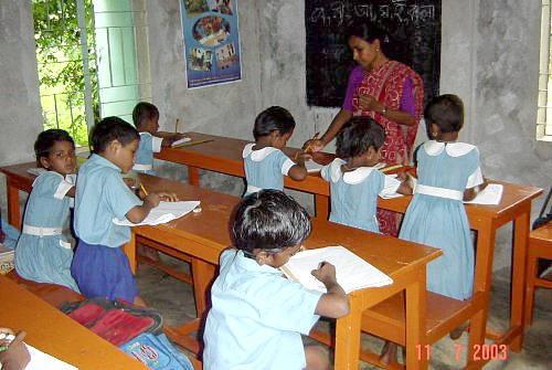 Im Juli 2000 haben einige Leute des Dorfes Kulun Nähe Dhaka angefragt, eine Schule mit 2 Klassenzimmern für Schulbeginner zu bauen - für Kinder die sonst 3 Km weit zur nächsten Missionsschule gehen müssen. Diese Leute sind aus unserer Gegend und liebe Freunde. Sie sind treue Leser der Botschaften des WLIG geworden und einer von ihnen macht die Botschaften in der Gegend um Dhaka bekannt. Wir haben uns entschieden ihnen zu helfen und die Schule für die Kleinen Kinder zu bauen. Der Bau war mitte 2001 beinahe fertiggestellt, doch hatten die Kinder bereits zuvor darin Unterricht. Das WLIG übergab der Schule Schreibtische und Sitzbänke im Februar 2003 und begann ab diesem Zeitpunkt auch den Lohn für den Lehrer zu bezahlen: Die Organisation, welche sie zuvor unterstützt hatte, hatte seine Tätigkeit eingestellt. Es wäre schaade für die Kinder, wenn die Schule geschlossen werden müsste, nur weil dem Lehrer kein Gehalt bezahlt werden kann. Einmal in der Woche liest der Lehrer den Kindern WLIG-Botschaften vor und sie diskutieren dann darüber und beten. ![]() |